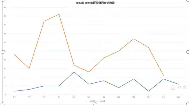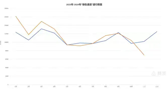 2023 年綠通數(shù)量共 132222 輛,免費(fèi)金額 375834942.22 元。2024年截至 11 月 20 日,綠通數(shù)量共 125346 輛,免費(fèi)金額 333207518.57元。數(shù)據(jù)按月度展開(kāi)如圖: